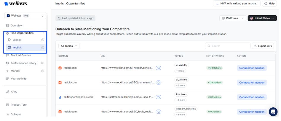 With features like visibility monitoring, explicit opportunity detection, outreach validation, historical tracking, and competitive benchmarking, Wellows turns AI presence into a manageable and scalable workflow. For teams navigating the shift toward AI-driven discovery, it offers clarity, direction, and actionable intelligence without relying on guesswork.